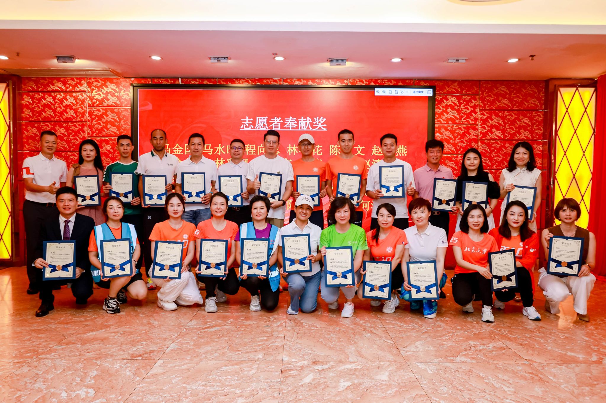 北大汇丰征戈会会长刘尊先生深情感谢志愿者,为他们颁发了纪念证书。晚宴上,五校戈友会代表作为颁奖嘉宾还为戈友颁发了个人奖(半马组男女前三名)和团队奖(征戈新锐奖、征途同心奖、戈壁飞羚奖、湾区聚力奖、破风领航奖、五强小将奖等)。